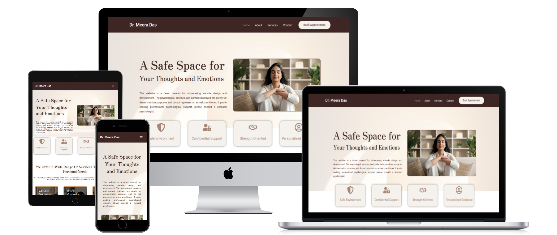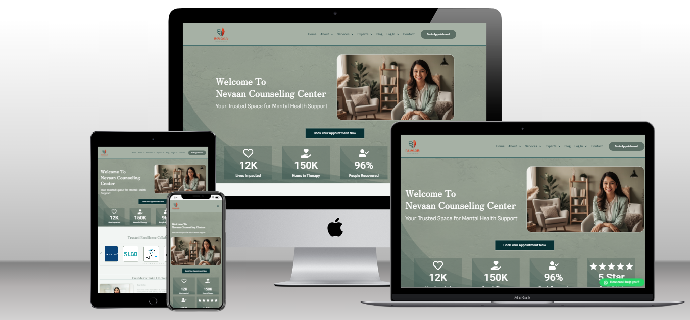 - Built psychology-focused websites like Nevaan Counseling Center, blending empathy-driven design with user experience to help therapists build trust and attract ideal clients.